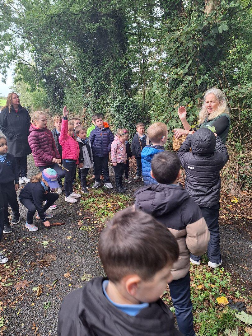 We had a speaker from Biodiversity Ireland who spoke to the children about all our local plants and animals. We went for a nature walk and gathered leaves, berries, branches and plants. The children then made necklaces and used clay and plants to create their own masterpieces!