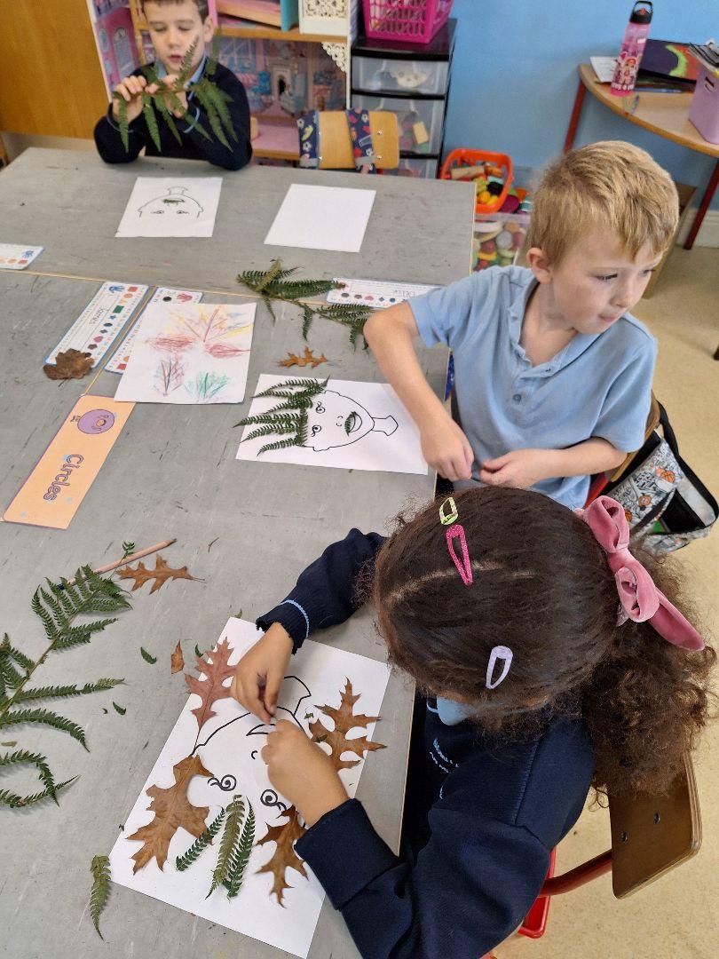 In preparation for Halloween we had a storyteller Ruth Marshall visit our school to tell the children some spooky Halloween stories and use our local flora to create some nature portrait art.